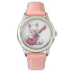 A graphic image of a cute white kitten playing a pink guitar The kitten's expression is playful,