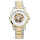 Estilo: Unisex Oversize Bracelet Watch de dois tons projetado para homens e mulheres, nosso Unisex Oversize Bracelet Watch está pronto para ser personalizado para seu próprio estilo pessoal. Adicione fotos, designs e texto para um documento único para seu guarda-roupa. Relógio de pulso unisex Material: Face: Precinta de aço inoxidável: Dimensões de aço inoxidável: face: 1,24" de diâmetro Precinta: 8,5" x 0,82" Caso: 1,57" de diâmetro Peso: analógico de 3 mãos de 0,319 lb Japão Quartz® cor Cheio impressão personalizada na face