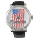 Um relógio Patriótico com uma bandeira 'esfarrapada' dos EUA e as palavras "Lembre-se" nele.