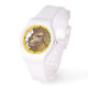 Face de relógio alegre e colorida, com pintura digital original que interpreta um sinal clássico do grego Zodiac: Leo, O Leão (para aqueles nasceres entre 23 de julho e 21 de agosto).