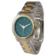 Você mostrará seu bom gosto vestindo este relógio verde escuro com números dourados.