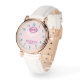 personalized watch, pink dial, gold watch, white leather strap, feminine gift, elegant wristwatch, monogram watch, luxury accessory, custom initials, timeless fashion