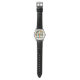 Este relógio masculino tem um padrão de linhas em cor de lágrima e laranja em comprimentos variados.