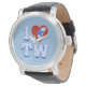 This design showcases crochet-style typography spelling a bold message of love for Taiwan, using soft yarn textures and a handmade aesthetic. Blue and white lettering references the iconic Taiwanese blue white slippers, while a vivid red heart highlights a Taiwan map detail. The contrast against a dark background enhances the tactile fiber art look, blending cultural symbolism with playful, textured typography for a visually warm and expressive composition.