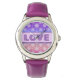 LOVE Typografia Flocos de Neve Roxo Watch