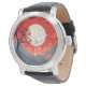 Relógio Lua Étera Num Céu Vermelho Sobre As Montanhas