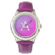 Roxo Faux Glitter e Sparkle Elegant Monograma Watch. Esta Monitorização pode ser personalizada para incluir o seu nome inicial e próprio. O "Relógio Luminoso" faz um Chá de panela, uma Festa de aniversário ou um presente de Festa de solteira para aquela pessoa especial que ama rosa.