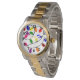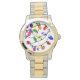 Este relógio masculino tem uma design de Natal com luzes enroladas em vermelho, azul, amarelo, verde, rosa e roxo.
