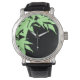 A delicada silhueta verde de Maple Japonês deixa as bordas externas deste relógio clássico. Perfeito para homens ou mulheres.
