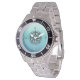 Blue Ombre Watch. Um rosa de bússola náutica para manter seus mancais oceânicos. Desfrute do efeito de ilusão óptica na moda do fundo ombre. Mantenha a citação "Nas ondas de mudança encontramos nossa verdadeira direção" ou adicione um nome, sentimento ou monograma para personalizar. Seja Personalizado, Seja Único, seja você no estilo fabuloso!