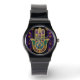 Relógio Mardi Gras Dourada Roxo Verde Arte Hamsas