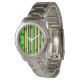 Este relógio feminino tem um simples design Mardi Gras de faixas verticais em amarelo, verde e roxo.