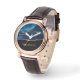 O relógio da mulher de ouro elegante, na moda, e marinho azul, preto e brilhante, personalizado com seu primeiro nome.