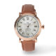 Relógio de Pulso de Couro Marrom e Ouro Rosa para Homens | Presente Personalizado com Numeração Romana e Mármore para Marido ou Noivo.