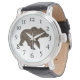 Relógio masculino com Banda de couro e Design de ursos pretos