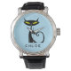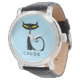 Este design de relógio de pulso personalizado apresenta um meio século preto "atômico" moderno com grandes olhos amarelos e uma cauda encaracolada. Você pode mudar facilmente a ortografia do texto; estilo, cor e tamanho da fonte com o botão Personalizar Zazzle.