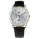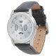 Cuidado com o pulso do dia de os pais com o PAI MELHOR original NUNCA em fundo falso de gradiente prateado. As letras pretas elegantes das palavras BEST e EVER estão localizadas no discagem em vez dos números. A palavra PAI está localizada no meio, acima está a coroa, e abaixo está o bigode. Você pode alterar a cor do plano de fundo, a cor da letra, a fonte e muito mais clicando no botão "Personalizar" e, em seguida, na inscrição "Clique para personalizar mais".