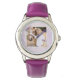 Este relógio personalizado com foto de cavalo floral roxo e rosa permite que você adicione uma imagem de seu cavalo para criar um objeto de recordação significativo que ela pode usar todos os dias. Perfeito para jovens amantes de cavalos e meninas que amam pôneis, este relógio personalizado com foto celebra o vínculo especial entre uma menina e seu cavalo. Um presente atencioso para amantes de cavalos, aniversários de cowgirl ou celebrações com tema equestre, transforma uma foto favorita de seu cavalo em um lembrete lindo que ela pode levar consigo para onde for.
