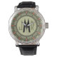 Relógios elegantes e elegantes, limpos e simples e personalizados para o homem especial na sua lista de presentes. Marcas clássicas, mas modernas, vermelhas e negras de hash em uma face militar verde de oliveira e khaki. Sinais de monograma negrito no estilo de Gatsby do art deco para os sofisticados cavalheiros — clique em Personalizá-lo para alterar os tamanhos de fonte, estilo ou cores. Os relógios monográficos de novidade fazem um presente personalizado perfeito para aniversários, aniversários, formatura, aposentadoria, assistentes de festa de casamento, feriados e outras celebrações de marco.