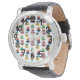 Este relógio masculino tem um médio de semicírculos moderno do século design empilhado em três cores retroradas num campo de branco. Quer o mesmo design com cores diferentes? Me mande mensagem.