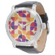 Carry a piece of modern art on your wrist with this stunning geometric wristwatch. Featuring a dynamic abstract pattern inspired by Bauhaus and Mid-Century Modern aesthetics, the dial showcases a vibrant interplay of arcs and circles in a sophisticated palette of burgundy, ochre, and soft lilac. This unique timepiece is designed for the creative individual who values both precision and style. Whether you're dressing up for a special occasion or adding a pop of color to your everyday office attire, this artistic watch serves as a captivating conversation starter. A thoughtful and stylish gift for designers, art lovers, or anyone who appreciates timeless, avant-garde design.