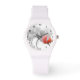 Relógio branco com 4 rosas brancas e uma rosa rosa pálido. Este relógio tem os números adicionados à frente. Cuidado bonito para um presente ou para você.