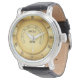 O relógio elegante do tipo do indicador de velocidade do ouro é visto com números romanos e medidor de MPH, perfeito para temas antigos de design de automóvel ou luxo.