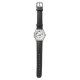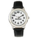 Esta imagem mostra um relógio infantil com um estojo redondo, de cor prateada, com um estalido branco. O relógio tem números negros grandes e fáceis de ler de 1 a 12, e as mãos de hora e minuto também são pretas, com as palavras "HOUR" e "MINUTE" etiquetadas. O nome no rosto do relógio pode ser personalizado para qualquer nome de escolha, fazer-o um acessório personalizado para crianças.