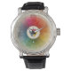 Mostre o seu artista interno com este relógio de roda a cores. A face de observação é feita como um detalhe de uma roda colorida histórica de 1775.