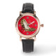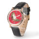 O relógio de pulso da na moda, feito com um rosto vermelho, e gráficos de diamante como rochas que representam as horas 12, 3, 6 e 9. Gráficos adicionais de um impressão oniforme onipresente a alto salto, decora o meio do rosto do relógio, e texto personalizado, em cima, está pronto para personalizar.