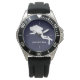 Vigilância personalizada de mergulho. Mergulhador Scuba com um campo de texto no centro inferior. Branco sobre fundo azul marinho.