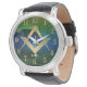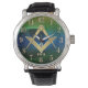 Na moda dourado quadrado e bússola Símbolo Masônico, relógio de pulso personalizado com um fundo fractal moderno.