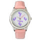 Mamãe Personalizada Datada de Pés-Bebês Assista banda rosa com pés-bebê roxos com Mamães e a Data. Personalize facilmente com a ajuda das ferramentas de designer do Zazzles. Excelente para as primeiras mães, chás de fraldas, memórias.