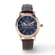 Create your own custom brand luxury watch. Timeless elegant watch dial design with fine indexes. Add your own custom monogram, custom name, designer name, initials, year of birth, logo, icon, photo image, etc. Sophisticated presence of modern minimalist style with elegant script typography template. Luxurious watch for him. Make it a cool new gift for boyfriend, boyfriend, dad, father, husband, brother, son, boyfriend, grandpa, grandpa, grandfather, stepdad, uncle, coworker, employee, company boss, business partner, colleague, best friend, teacher, coach or retiree. Unique monogrammed gift ideas for men's birthday, graduation, anniversary, retirement, vacation, wedding party, appreciation, employment, work, etc. Large diameter about 44mm. Classic vintage style with 22mm fashion black leather wrist strap. White or custom background color. Perfect for 20th, 30th, 40th, 50th, 60th, 70th, 80th, 90s celebrations. Affordable quartz watches under $100. Nice for casual daily wear and special occasions. Also available for other models with brown leather or steel bracelet.