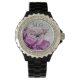 Bonito pintura aquosa de uma mistura de rosa púrpura com um latido rústico sutil com detalhes de monograma de corda.