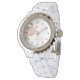 Este elegante relógio para ela mostra tartarugas tribais de ouro rosa num fundo branco de mármore esmagado. Personalize-o com seu nome e monograma.