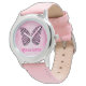 Esclareça todos os dias com este belo relógio de borboleta rosa, incluindo o nome ou monograma da sua escolha. Você se sentirá bem toda vez que olhar para esta linda borboleta!