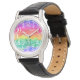 Esse relógio fabuloso agita design em cores do arco-íris com veias douradas e brilho. Adicione seu nome e inicial para personalizar ou excluir para uma aparência limpa. Faz um presente excelente!