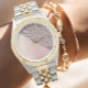 Traga elegância atemporal para a sua celebração nupcial com este relógio de monograma elegante em ouro rosado.