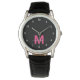 Monograma personalizado, relógio preto e branco com números brancos simples. Esse relógio na moda, minimalista, combina elegância clássica com um toque pessoal, apresentando uma inicial cor-de-rosa-arrojada sobre uma face preta (nota: o rosa é uma cor plana sem nenhum cintilador), realçada por simples números brancos para fácil leitura. O design inclui um nome de script branco delicado, adicionando um detalhe personalizado que torna este relógio verdadeiramente único. Ideal para vestes cotidianas ou ocasiões especiais, é um presente pensativo para aniversários, feriados, ou só porque. Este relógio faz um presente bonito e significativo para uma irmã de irmandade, amiga, mãe, filha, e muito mais. Com seu charmoso esquema de cores e design de eterno, é um acessório chique e prático para qualquer armário.