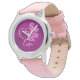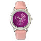 Um relógio muito bonito com um coração e rosas de aspecto gravado. Está sobre um fundo de beringela contrastante e usa um monograma personalizado para você mudar para suas iniciais, digitando na caixa.