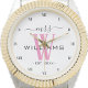 Celebre sua santa matrimônio com este relógio monograma Mrs. para esposas. Personalize adicionando seu sobrenome e data do aniversário de casamento. Fonte elegante rosa e preto. Ótimo presente de aniversário de casamento ou aniversário para uma esposa.