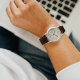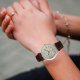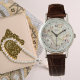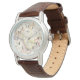 Relógio de Pulso com Mapa de Meca Monograma Feminino – Pulseira de Couro Marrom – Caixa de Prata – Eid | Hajj | Umrah | Presente de Noiva | Aniversário