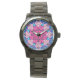 Relógio Mosaico Rosa Mandala Floral Psicélico Retro