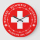 Relógio de Suiça vermelho e branco com bandeira suíça no centro. Para esqui, equipe de esqui, Dia Nacional da Suíça (Bundesfeier) ou qualquer membro orgulhoso da família suíça.