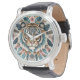 Lindo mandala de estilo boho com tigre e penas em tons de rosa suave, azul verde e terra.