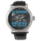 This proud wall clock celebrates the formidable profession of a truck driver, from a loving partner's perspective. Against a black background with a blue rim, it features a bold blue semi-truck illustration and the straightforward declaration: "MY HUSBAND DRIVES A BIG TRUCK". It's an ideal gift for anyone who wants to show pride in their husband's demanding but essential career. The design tool can also be used to add custom text if you want your name or company on this clock. You can customize the color of the frame to any color you desire by going into the design tool.