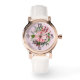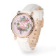 Relógio Name, Pink Poinsettia Bouquet White Leather Womans