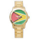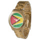 The flag of Guyana, also known as the Golden Arrowhead, is a green field with a red triangle in front of a larger yellow triangle