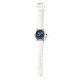 personalized watch, navy blue dial, gold watch, white leather strap, elegant wristwatch, monogram gift, luxury accessory, custom initials, timeless design, stylish fashion